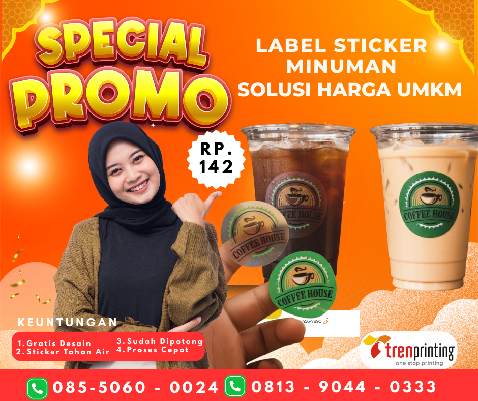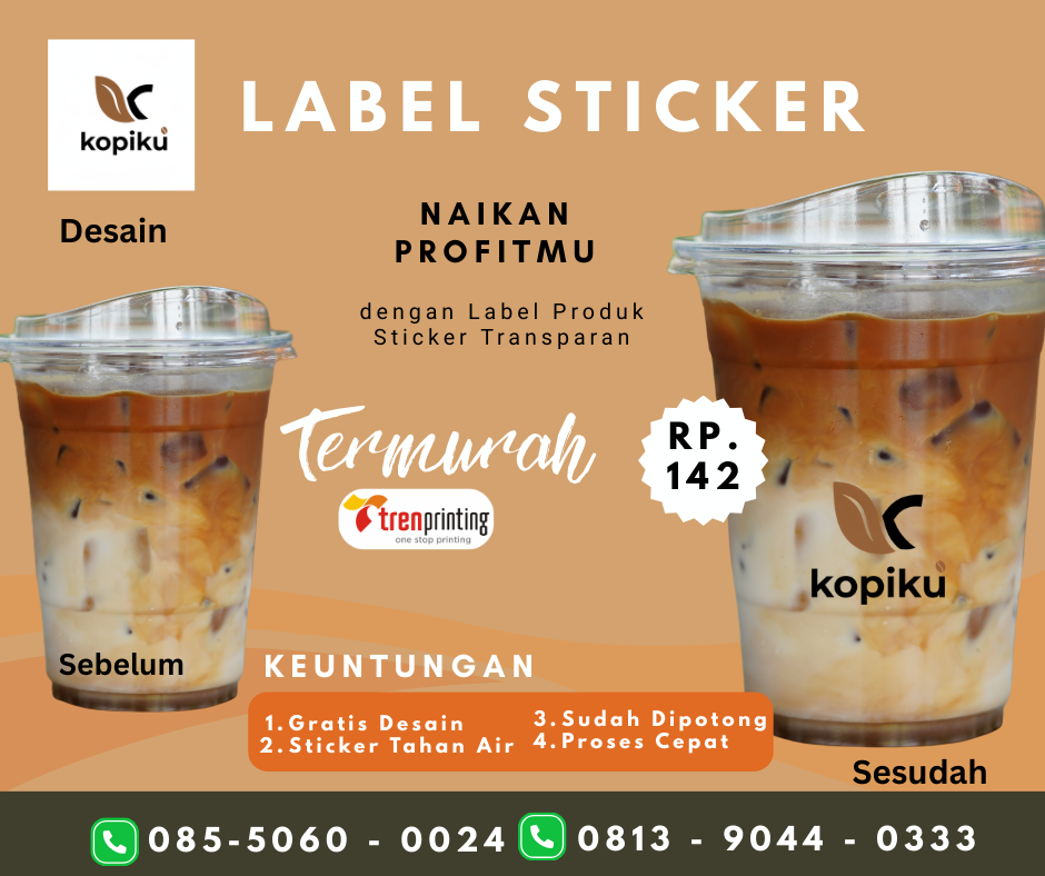 Cetak label cup minuman, sudah dipotong tinggal tempel.