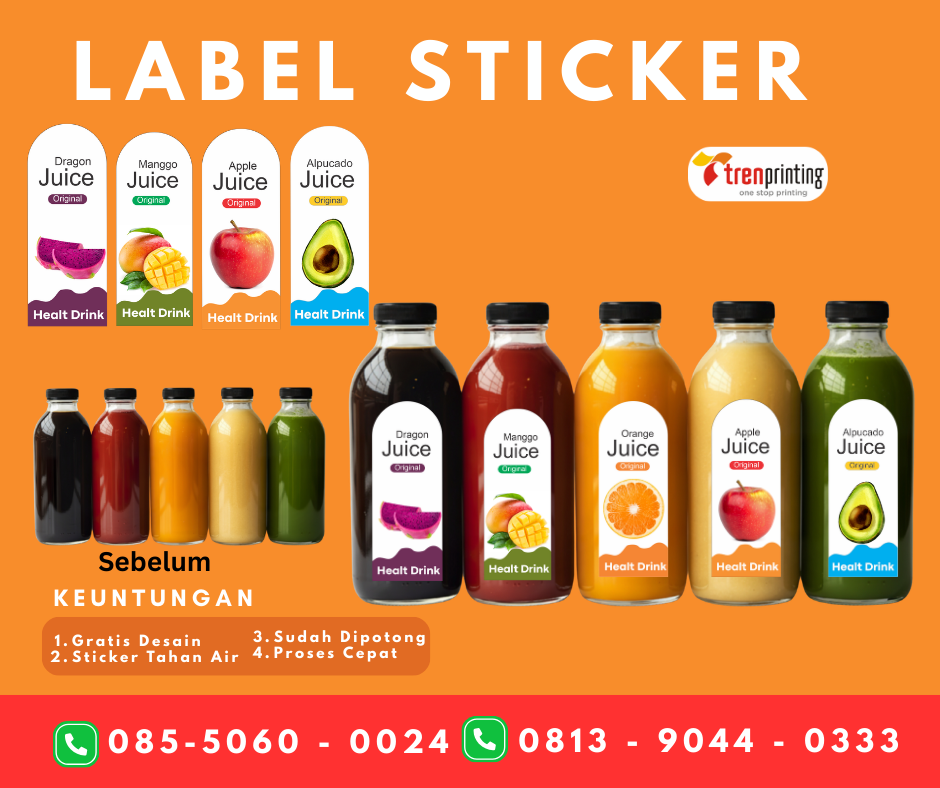 Cetak label botol minuman, sudah dipotong tinggal tempel.