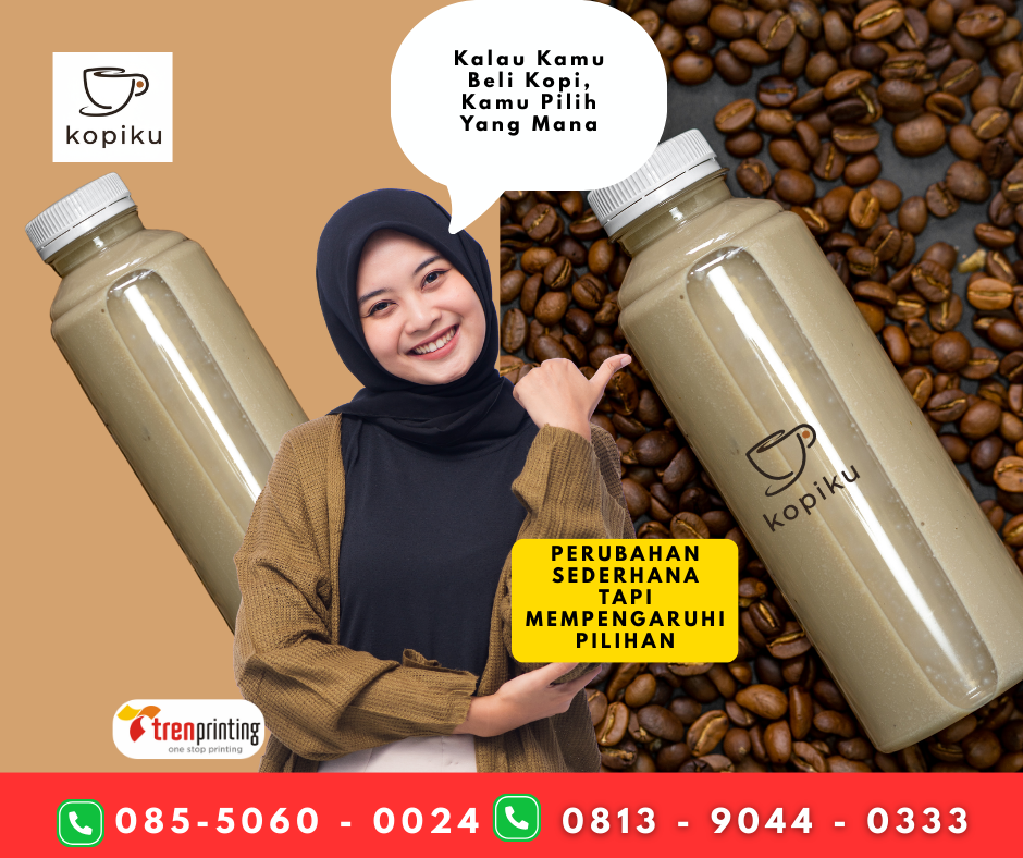 Cetak label botol minuman kopi, sudah dipotong tinggal tempel.