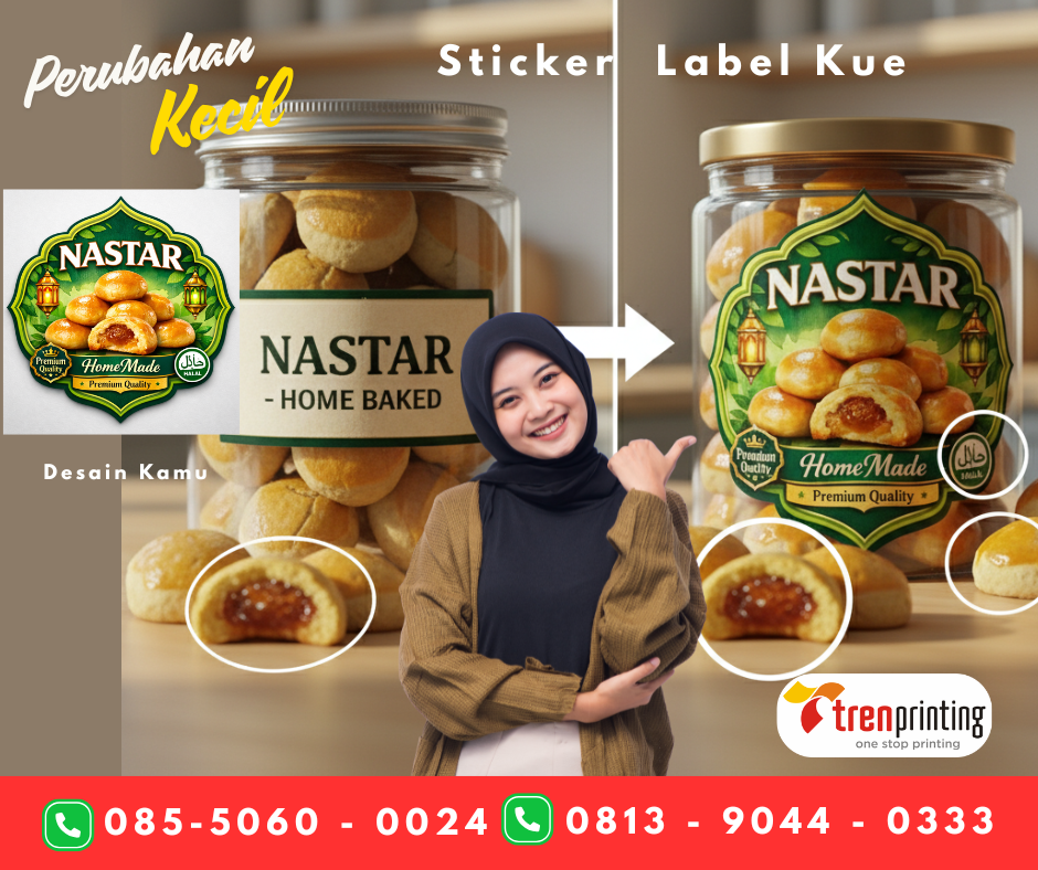 Cetak label makanan, sudah dipotong tinggal tempel.